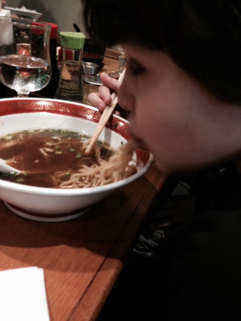 "ラーメン&餃子"の鉄板メニューで大喜びな男子たち。